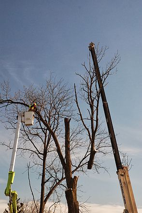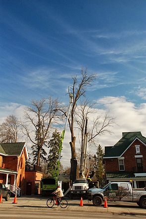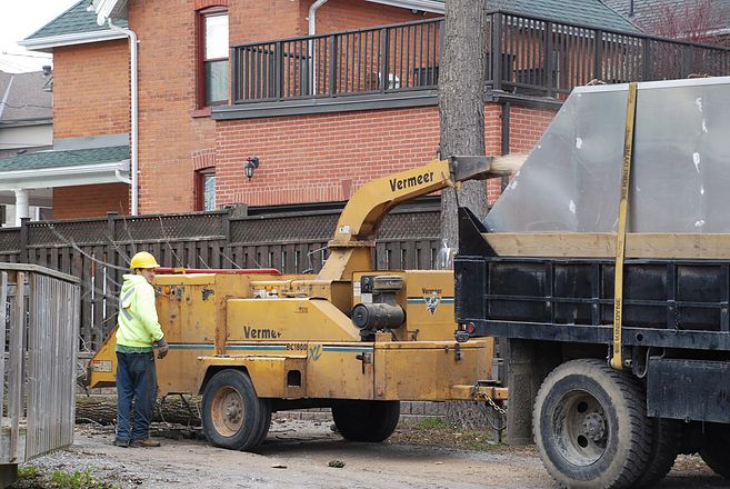 Edenbridge Drive in Vaughn, likely the hardest hit street during the 2013 Ice Storm. This morning (December 23, 2013) a loader cleared a path for WTS units to remove the remainder of damaged trees. The residents had been house-bound for around 70 hours. Needless to say, the residents were quite thankful and the crew got more coffee than they could stomach.