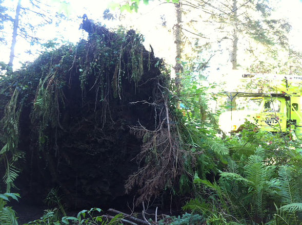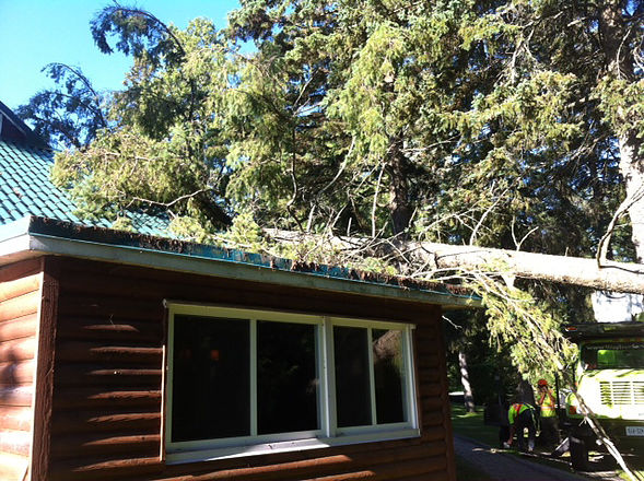 Bass Lake did not escape the wrath of July’s ferocious storm. Seen in the following pictures a cottage was struck when a large tree uprooted and fell on the cottage.