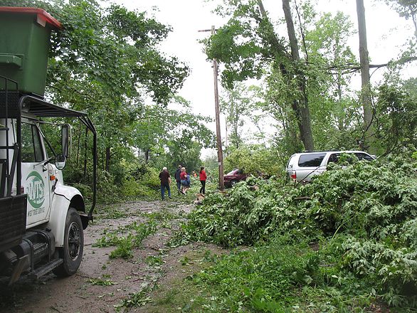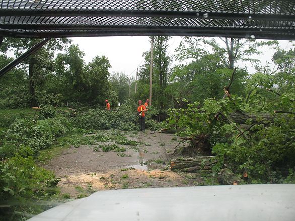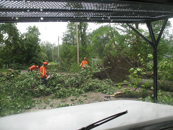 This small community on Little Lake in Midland gains access to their homes through a private road (shown here). With the wide spread distruction and all the local tree and hydro companies overwhelmed, Wes’ Tree Service responded in full force to help clear the roads and dispose of numerous amounts of wind-thrown and damaged trees.