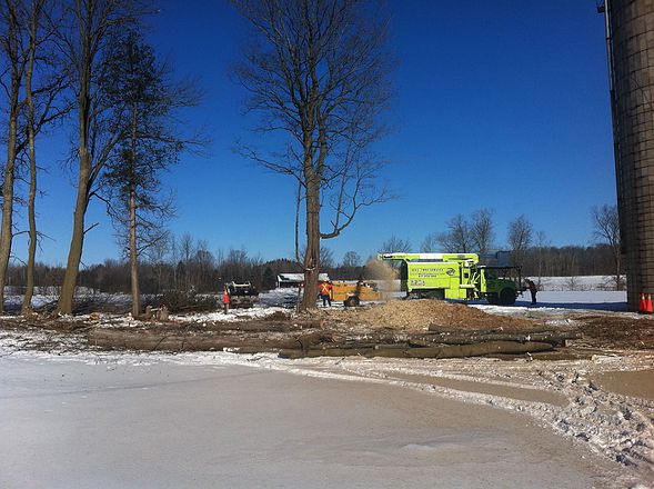 When a farmer on Line 5 in Oro-Medonte decided to remove the overgrown wind-break trees next to the house, after having a few hazardous trees fail, Wes’ Tree Service removed this half acre area and deposed of all the wood waste material within a two day stretch.